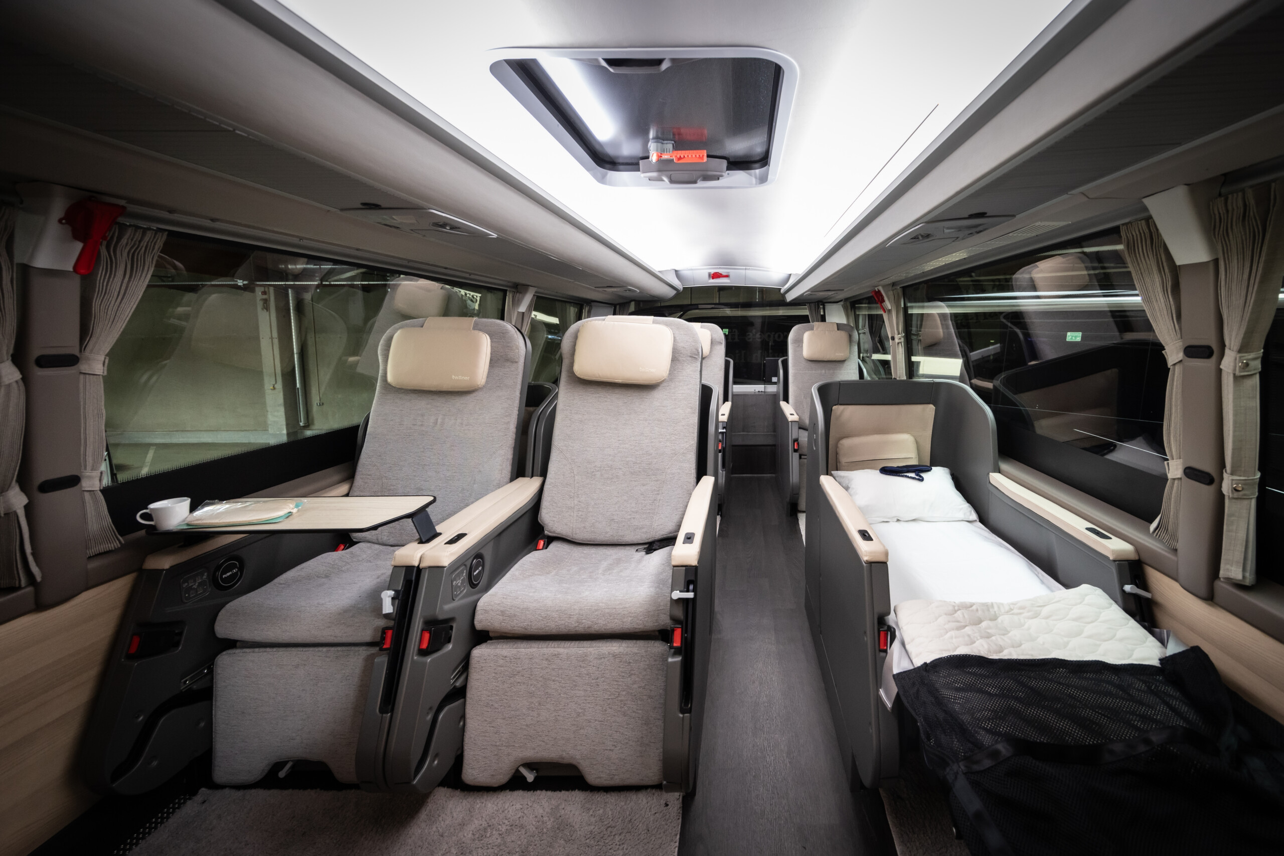 Les bus Twiliner sont équipés de 21 sièges haut confort brevetés qui offrent aux passagers une position allongée ergonomique et la possibilité de se détendre et de se reposer comme bon leur semble. L’équipement intérieur est complété d’un cabinet de toilette spacieux, d’un petit dressing et d’un espace kitchenette avec machine à café. Le choix des premières destinations desservies résulte d’une analyse des lignes aériennes intra-européennes les plus fréquentées. « Twiliner a fait le constat d’une demande forte de liaisons depuis la Suisse vers la Belgique et les Pays-Bas, représentant quelque 2.100 passagers par jour », explique Philippe Heinisch, attaché de Direction du Groupe Emile Weber et Advisor Strategy & Commercial de Twiliner. « Si nous captons ne fusse qu’un pourcent de ce trafic, notre taux de remplissage sera plus que satisfaisant. » À terme, le projet est de bâtir un réseau européen complet d’une trentaine de destinations à l’horizon 2030. « Pour le moment les premiers voyages nous servent de test grandeur nature. Au fur et à mesure, nous pourrons ajouter des horaires différents, toujours de nuit, et des nouvelles destinations. Le développement se fera de manière flexible en fonction des demandes des clients. »